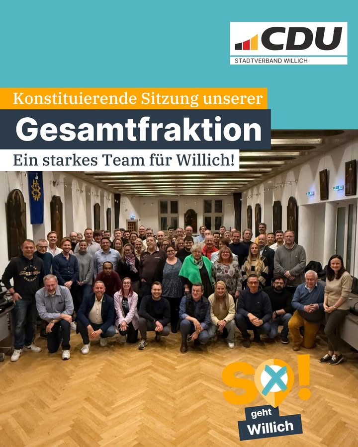 mehrUnsere CDU-Gesamtfraktion startet in die neue Legislatur!🚀 Das 80-köpfige Team mit ganz unterschiedlichen Hintergründen startet motiviert in die kommenden 5 Jahre - auf geht?s!🤝🏻#cduwillich #willich #fraktion #aufgehts👉🏻 https://cdu-willich.de/news/lokal/422/Neue-CDU-Fraktion-nimmt-ihre-Arbeit-auf.html